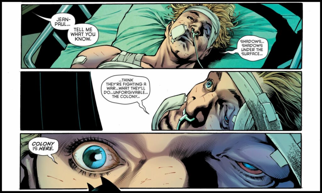 Batman wraz z Red Robinem udają się sprawdzić stan ciężko pobitego Azraela. Opiekuje się nim Dr. Leslie Thompkins, która jest przeciwna wciąganiu młodego Tima w walkę z przestępczością. Nietoperz puszcza komentarz mimo uszu i nalega na rozmowę z Jean-Paulem. Mimo protestów pani doktor, że Azrael potrzebuje szpitala, Valley budzi się, mówiąc jedynie, że „Kolonia tu jest”. Bohaterowie przenoszą się na dach, by porozmawiać. Batman zwalnia Tima ze służby do końca nocy, ale Red Robin chce wiedzieć więcej na temat tego, nad czym Batman aktualnie pracuje. Bruce mówi mu, że chociaż jest Red Robinem, to dla niego zawsze będzie Robinem, a Gotham zawsze będzie dla niego miejsce, bo dzięki niemu miasto jest bezpieczniejsze.