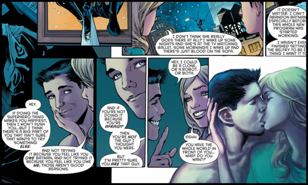 Tim idzie do mieszkania Stephanie, z którą aktualnie się spotyka. Stephanie ruga to, za to że nie powiedział Batmanowi. O czym? Okazuje się, że Timowi zostało przyznane najwyższe możliwe stypendium naukowe, a sam Drake rozważa porzucenie działalności bohatera na rzecz bardziej przydatnej światu kariery naukowej. Stephanie zapewnia go, że cokolwiek zrobi, ona będzie go wspierała. Bohaterowie spędzają razem noc. W tym samym czasie Kate odwiedza ojca, który okazuje się wiedzieć o tym, że dołączyła do Batmana, jak i o tym kto kryje się pod maską. Opowiada swojej córce o tym, że rodziny Kane’ów i Wayne’ów były zawsze wobec siebie wrogie, a Wayne’owie potrafią jedynie psuć relacje między ludźmi. Kate postanawia dalej nie słuchać ojca i wychodzi.