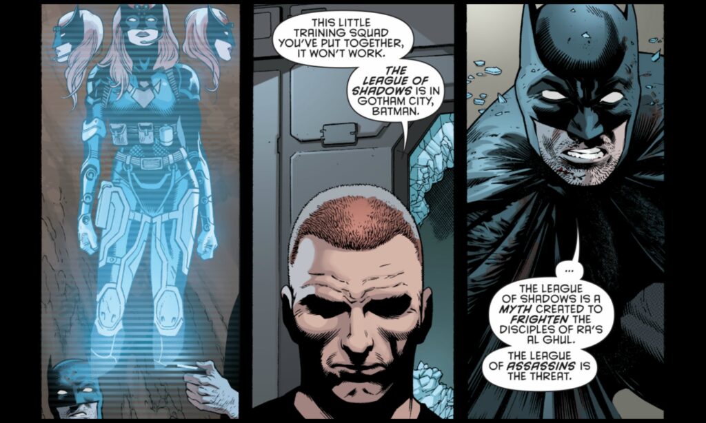 Nietoperz ciągle przebywający w bazie wroga dopada młodego informatyka. Ulysses Hadrian Armstrong, bo tak właśnie się nazywa, wyjaśnia Batmanowi, że przez jego aktywność podczas „Zero Year” rząd postanowił rozpocząć program szkolący Batmanów na usługi kraju. Agenci ci zajmowaliby się walką z terroryzmem. Kolonia przez lata obserwowała w jaki sposób porusza się i walczy Batman i stworzyła algorytm który podpowiada żołnierzom jakie mają być ich kolejne ruchy. Po szybkim zneutralizowaniu informatyka „batżołnierze” dopadają Bruce’a. Nie brakuje tam oczywiście generała Kane’a, który wyjaśnia Batmanowi dlaczego robi to wszystko: Liga Cieni (mityczna organizacja, która była straszakiem dla młodych adeptów Ligi Zabójców) jest w Gotham. Generał próbował przez lata ukształtować Kate do przejęcia roli dowódcy w wojnie. Ojciec ciągle ma nadzieję na to, że córka przejdzie na jego stronę, a w raz z nią reszta ich drużyny. Kane przykłada pistolet do głowy Batmana i… pojawia się Batwoman, która wydaje rekrutom rozkaz ataku!