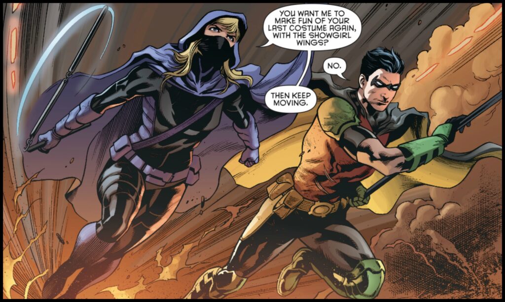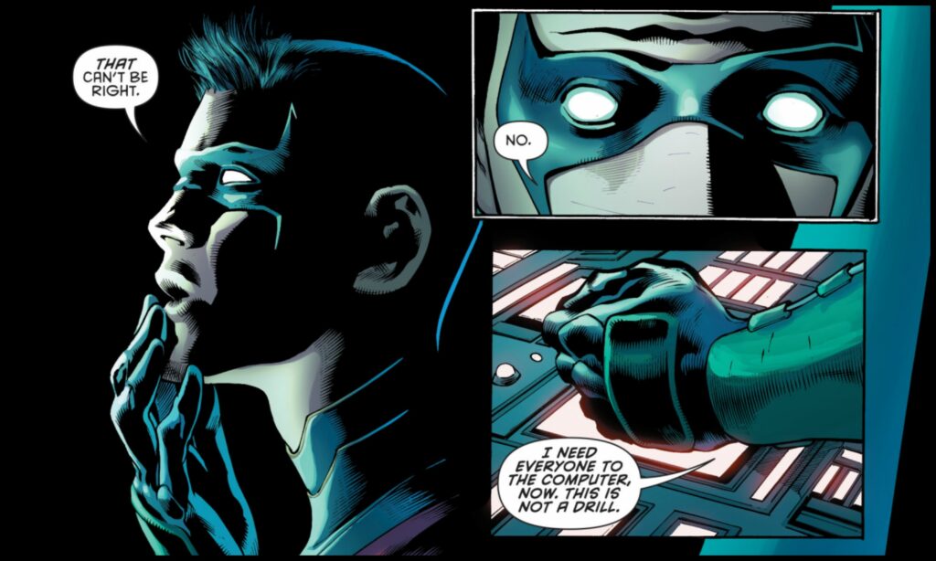 Okazuje się, że Tim odparł całą pierwszą falę. Pyta Batmana o to czy ludzie są bezpieczni. Uzyskując satysfakcjonującą odpowiedź, odmawia zejścia do Dzwonnicy. Widzi kolejne nadciągające drony. Prosi Batmana o to, żeby przeprosił od niego wszystkich i powiedział jak wiele są dla niego znaczą. Dicka, Jasona, Damiana, Alfreda… wszystkich. Na koniec dziękuje Bruce’owi za wszystko co dla niego zrobił i zrywa komunikację. Batman krzyczy w rozpaczy. Drake kontaktuje się jeszcze ze Spoiler. Dziękuje Stephanie za ich wspólny czas i mówi że to ona nadała jego życiu sensu. Wyznaje jej miłość, po czym wyjmuje komunikator z ucha. Otaczają go drony. Tim zamyka oczy.