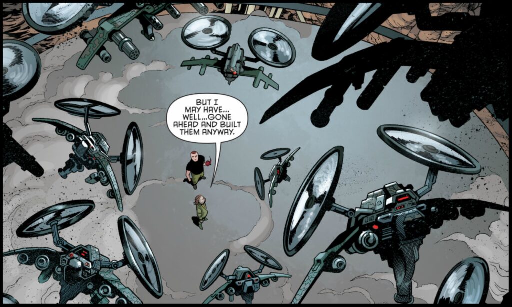 W samolocie Kolonii, będącym aktualnie ich bazą, trwa poruszenie. Generał nie może uwierzyć, że Timowi udało się przekierować drony i zniweczyć jego plan. Nagle zjawia się Batwoman, wściekła na ojca za jego decyzje. Jacob jednak uparcie się usprawiedliwia, mówiąc, że należało je podjąć. Mówi też, że drony z którymi walczy Tim, są jedynie pierwszą, przygotowawczą falą. Druga jest zdolna do burzenia budynków. Wojskowy jest pewien, że Drake polegnie tej nocy. Córka ostrzega go, że własnie jest ścigany przez wojsko za akty terroryzmu i dopilnuje, żeby zarzuty zostały postawione. Na zewnątrz ARGUS już szturmuje bazę wojskowych. Generał rozkazuje użycie protokołu „Czarny Lot”, który okazuje się być kosmiczną technologią teleportacji. W ostatniej chwili Kate wyskakuje, zbijając okno i pociągając swojego ojca ze sobą. Wyżywa się na nim i powiadamia Batmana o tym, że aresztowała ojca. Mówi też, że sytuacja stanie się jeszcze gorsza.