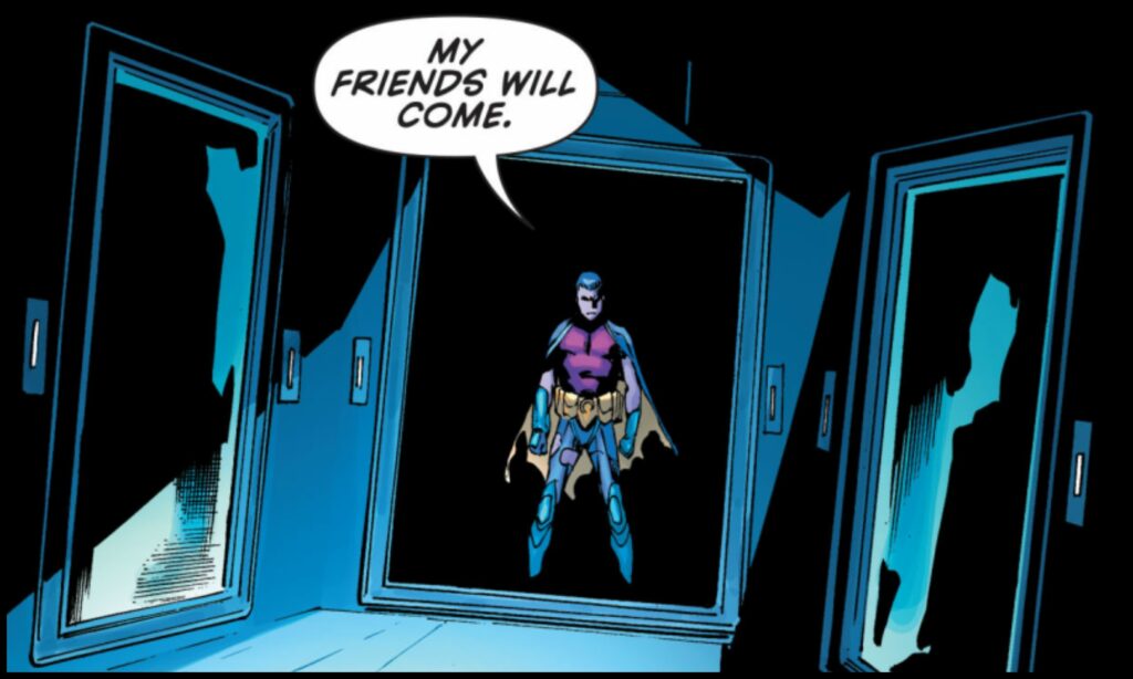Okazuje się, że Tim żyje. Został gdzieś przeteleportowany. Skołowany budzi się w swego rodzaju celi i rozgląda się dookoła. Przed jego oczami staje zakapturzona postać (Mr. Oz), która mówi nastolatkowi, że dla swoich przyjaciół jest martwy, oraz że „oni” musieli zdjąć Tima z radaru, gdyż „łączył wątki, które nie mogą być powiązane”. Czy Tim pracował nad czymś w ukryciu przed Batmanem? Obok jego celi znajdują się jeszcze 2 inne, puste. Drake odgraża się, że uczył go największy detektyw na świecie i że nie zatrzyma go w tej celi na długo. Tajemniczy mężczyzna mówi, że to jeszcze nie koniec, a Tim krzyczy, że jego przyjaciele jeszcze po niego przyjdą…