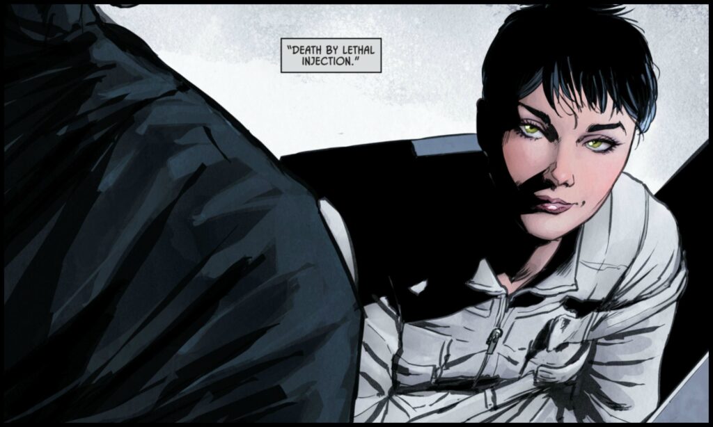 Batman i Catwoman przytulają się na dachu rozmawiając. Batman mówi, że Amanda Waller sprawiła, że prezydent podpisał umowę. Kara śmierci Catwoman została zmieniona w dożywotnie pozbawienie wolności. Selina musi być dostarczona do Blackgate tej nocy, ale ta mówi, że chce spędzić tą ostatnią noc razem z Bruce’m. Batman nalega, ale Catwoman przekonuje go tym, że jeśli do Blackate udadzą się rano, to powie mu prawdę na temat tych 237 morderstw, które rzekomo popełniła. Batman zgadza się.
