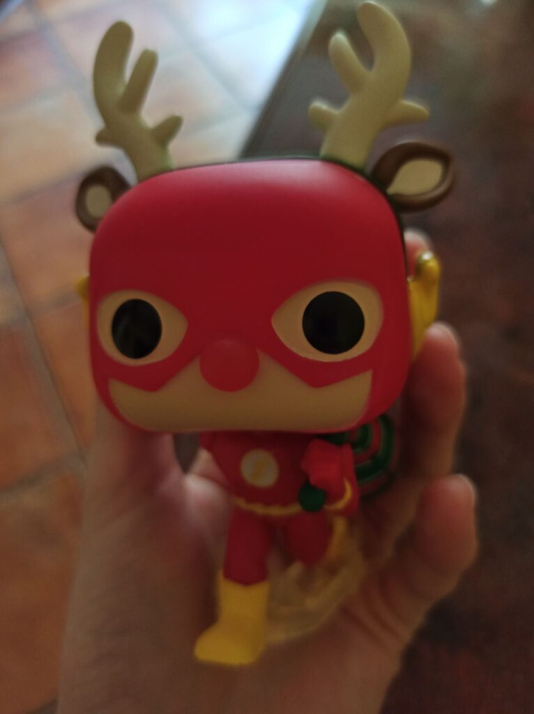 Jedna uwaga, zarazem ostrzeżenie, jeśli chodzi o świątecznego Flasha. Figurka jest kiepsko wyważona i bardzo często przewraca się na mojej półce. Muszę się nagimnastykować, żeby postawić go jak na POP-a przystało. Raczej nie zależy to od powierzchni, ponieważ figurka zaliczała przysłowiowe „bęc” nawet na równym stoliku kuchennym. Pozycję Flasha uratowały pozostałe figurki na mojej półce. Mam ich na tyle dużo, że jest już ścisk i mogę swobodnie oprzeć go delikatnie o sąsiadujące figurki (tak się składa, że jest nią świąteczna Harley), że upadki imają się go. Nikt ze znajomych nie dostrzegł mojej podstępnej strategii. Pewnie to się zmieni po przeczytaniu tego tekstu.