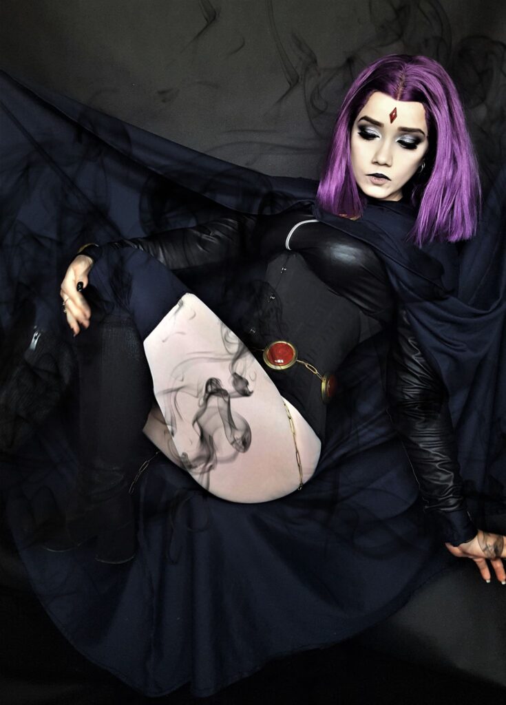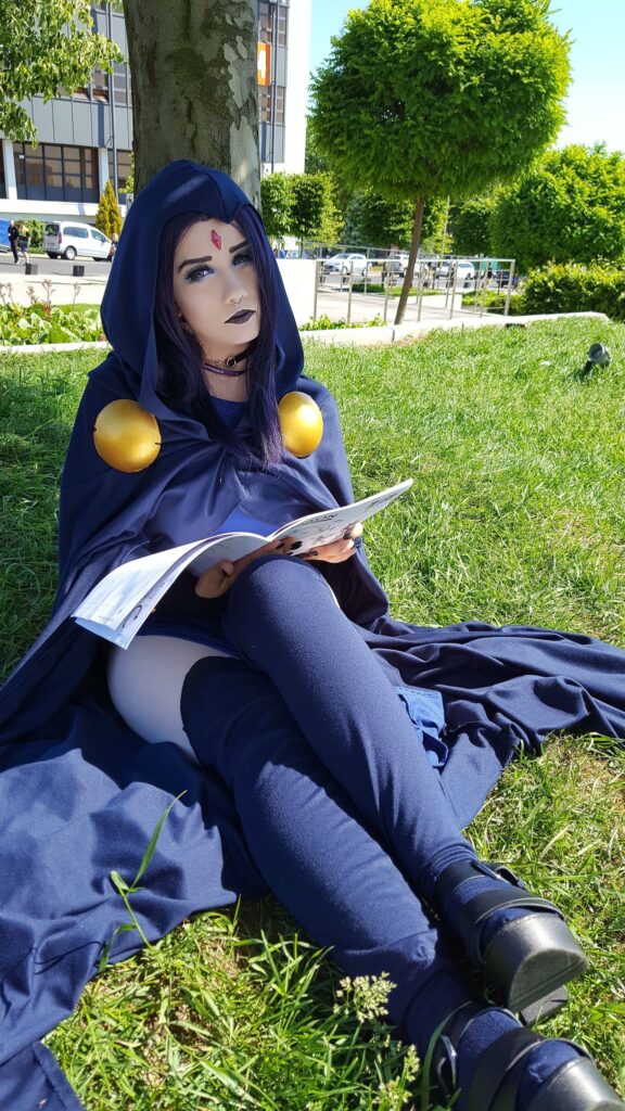 Przede wszystkim muszę polubić historię bohatera, jego wygląd i charakter. W życiu nie czułabym się dobrze w cosplayu postaci, której po prostu nie rozumiem i mnie denerwuje (chyba, że ironicznie….żeby się ponabijać, to co innego 😛 ). A jeśli chodzi o „wersję” to nie ukrywam, wybieram albo taką, do której mam najwięcej materiałów… lub po prostu najbardziej mi się podoba i wiem, że będę się czuła komfortowo w danym stroju. Mam kilka wersji Raven i tak jak uwielbiam wygląd kreskówkowy to na konwent bym poszła w wersji komiksowej (długa kiecka).