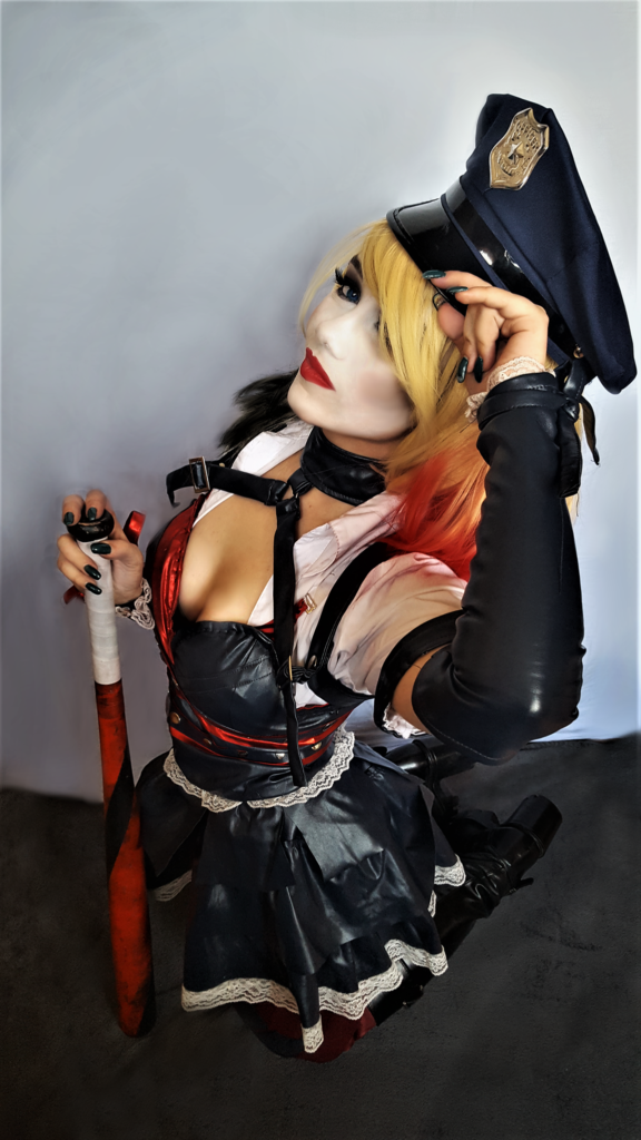 Cóż…miałam wielką fazę na postać Harley Quinn i długie blond włosy. 😀 Dodatkowo koleżanka namówiła mnie i mojego ówczesnego chłopaka na Pyrkon, więc połączyłam kropki i stwierdziłam, że albo na przypale albo wcale ;P Na konwencie nasze stroje Harley i Jokera miały całkiem niezłe wzięcie, więc się jakoś bardziej zmotywowałam do „przebieranek”, w końcu to łączyło pasje do makijażu, z ogólnym tworzeniem (od dziecka szyłam ubranka lalkom XD) i możliwością wcielenia się w ukochane postacie.