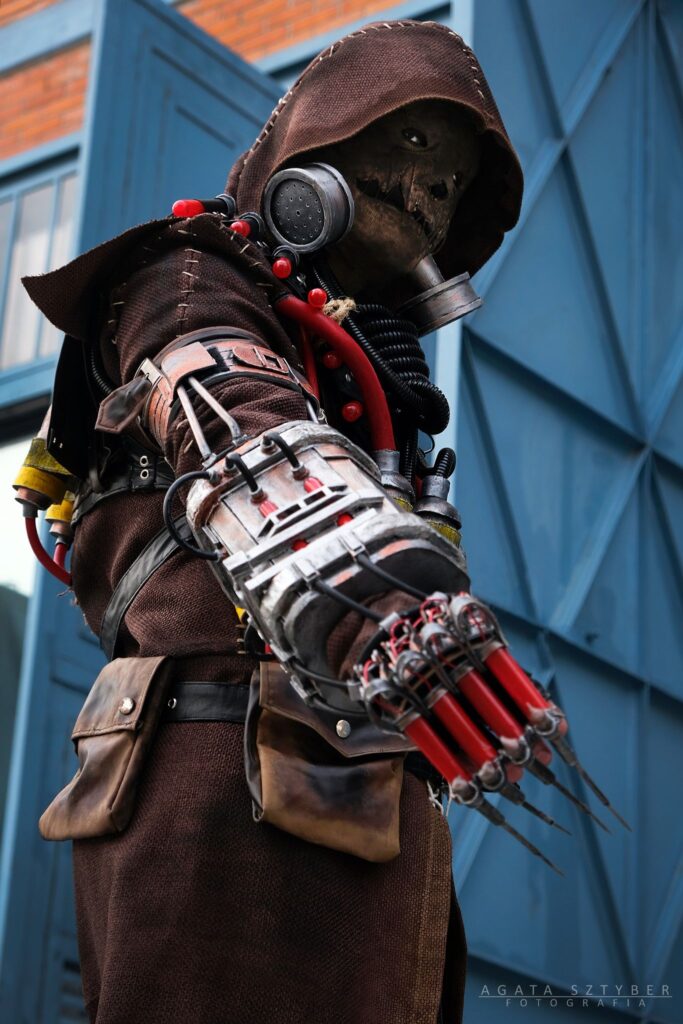 Dosłownie każdy konkurs i konwent niesie za sobą mnóstwo historii, jednak ograniczę się do dwóch które szczególnie zapadły mi w pamięci. Pewne zdarzenie miało miejsce w pierwszym roku mojej cosplayowej działalności. Byłem Quicksilverem na Comic Conie. Kiedy pozowałem do zdjęć na głównym placu podbiegła do mnie mała dziewczynka i ze łzami radości w oczach powiedziała, że marzyła o spotkaniu jej ulubionego X-Mena, podziękowała i objęła mnie – niby nic wielkiego, ale wtedy po raz pierwszy dotarło do mnie, że ta praca ma olbrzymi sens i może dawać radość nie tylko mnie ale również wielu ludziom wokół. Nie powiem – wtedy się wzruszyłem 😀 Druga historia wydarzyła się na słynnej już wystawie DC Świt Superbohatrów organizowanej w Łodzi – tuż przed konkursem. Szliśmy przez wystawę w składzie Harley, Wonder Woman, Batman, Joker i ja – Scarecrow. Trzymałem się specjalnie z tyłu, żeby w momencie jak pojawią się dzieci po prostu się schować, bo nie chciałem nikogo wystraszyć. Młodsze pokolenie w najlepsze fotografowało się z ulubionymi bohaterami i niestety potem zza rogu wyłonił się Strach na Wróble. W jednym momencie większość tych dzieci uciekło z płaczem do rodziców. Troszkę było mi głupio, gdyż czułem, że tak się może skończyć, jednak czy to nie najlepsza oznaka świadcząca o wiernym odwzorowaniu mojego Scarecrowa?
