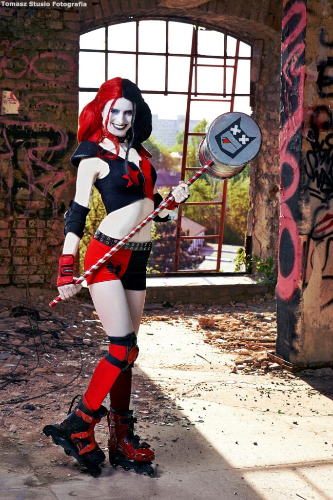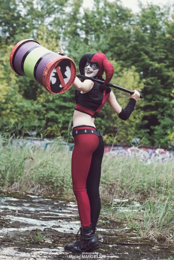 Z DC oczywiście Harleyka – nie wiem która wersja najbardziej. Uwielbiam w niej to, że ubierając ten strój staję się zupełnie kimś innym. Z natury jestem introwertyczką, a ta postać sprawia, że łatwiej mi jest nawiązać kontakt z kimś obcym na konwencie czy zrobić coś głupiego. No i przez lata cosplayowania Harley zrobiłam sporo propsów do niej, stawiałam pierwsze kroki w pozowaniu przed aparatem i najwięcej się przy tych strojach nauczyłam – a wierzcie mi lycra nie jest taka prosta do szycia – trzy maszyny do szycia babci uśmierciła i pierwszy strój musiałam dziergać ręcznie, nie polecam 😛