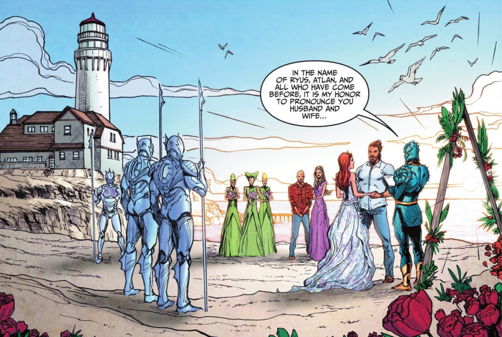 Następnie rekomenduję przeczytanie „Aquaman and the Lost Kingdom Special”, czyli oficjalnego, komiksowego prequela do zbliżającej się premiery. Komiks wypełnia lukę czasową pomiędzy obydwoma filmami. Komiks podzielony jest na trzy części, każda dedykowana innemu bohaterowi, kolejno wymieniając: Aquaman, Black Manta i Orm. Najbardziej istotne są wydarzenia skoncentrowane na Aquamanie, ponieważ z nich dowiecie się o nowym zagrożeniu dotykającym Atlantydę oraz kierunek rozwoju miłosnej relacji Arthura i Mery – w komiksie doszło do zaślubin, później dowiedzieliście się o ciąży ukochanej Aquamana. Mniej istotne, ale nadal ciekawe są pozostałe wątki: Black Manta zdobywa własną załogę podczas wykonywania prób narzuconych przez jego ojca, a Orm podejmuje nieudane próby ucieczki z więzienia. Ciężko przewidzieć w jakim stopniu film przybliży wydarzenia z komiksu. Pamiętajmy, że „The Flash” nie miał odniesień do komiksowego prequela. Lepiej zabezpieczyć się i sięgnąć po komiks. Sam komiks nie był zły, na pewno lepiej wypadł niż prequel „The Flash”.
