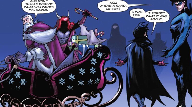 Niestety nie dowiedzieliśmy się, czy któryś z nich otrzymał wymarzony prezent od Mikołaja. O ile przy Clarku jest to całkiem możliwe, tak przy Damianie… No sami wiecie. Co ciekawsze, na tym nie koniec rozmowy Mikołaja z Damianem. Brodacz stwierdził, że Damian nigdy nie miał prawdziwego dzieciństwa i czy nie chciałby pomóc mu (i Krampusowi) rozdawać prezenty dzieciom tej nocy – Batman nie miał nic przeciwko.
