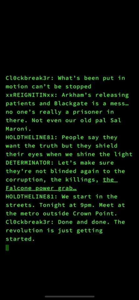 Przypomnę, że w pierwszym odcinku pojawia się kod QR powiązany z postacią Riddlera. Po zeskanowaniu, użytkownicy mogą zobaczyć specjalną wiadomość dotyczącą planów ruchu walczącego o prawdę w Gotham!