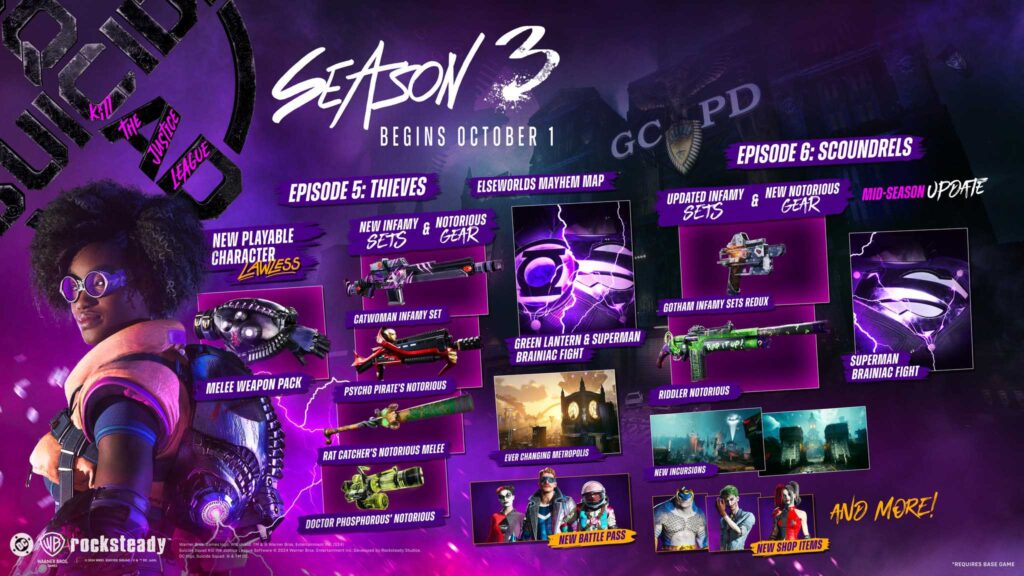 Jeśli jeszcze kogoś interesują losy gry „Suicide Squad. Kill The Justice League” to ogłoszono, że Lawless (Zoey Latwon, córka Deadshota) dołączy do grona grywalnych postaci od 3 sezonu! Pełna zawartość sezonu, startującego jutro, wygląda następująco.