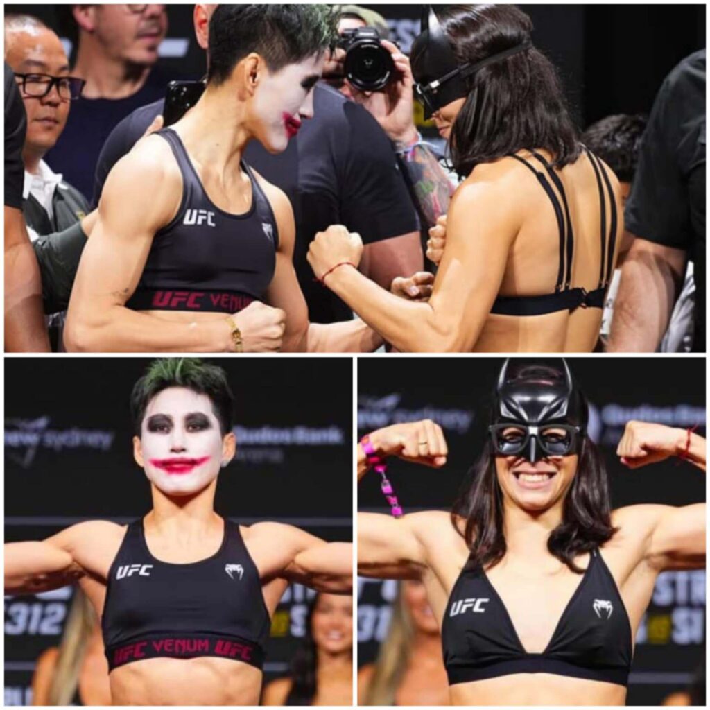 Joker vs Batman, czyli Wanga Cong i Bruna Brasil ustylizowane na ikonicznych rywali DC podczas face-offu przez galą UFC 312. Sędziowie zdecydowali o zwycięstwie Wangi… Jokera!
