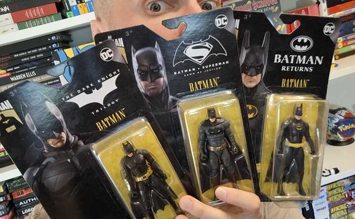 Nie mogłem się oprzeć promocji na zestaw trzech Batmanów od Spin Master, który ukazał się na 85. lecie debiutu Batmana! Niby nic specjalnego – figurki mają niecałe 10 centynemetrów wysokości, taniość wykonania bije po oczach (jakość malowania i materiałów), wąski zakres ruchliwości figurki (zapomnijmy o fikuśnych pozycjach)…