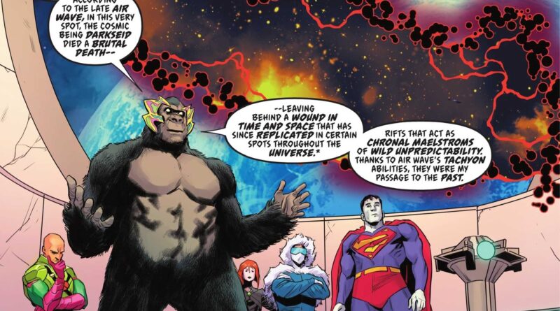 Fascynują mnie wątki czasoprzestrzenne w każdej formie, a Mark Waid korzysta z tematyki z głową i precyzją, łącząc pozornie odległe elementy w spójną całość. Dowodem na to może być chociażby powrót motywu szczeliny Omega z „DC All In Special #1”. Z początku drobny element fabularny, od którego wszystko się zaczęło, nagle urasta do roli zapowiedzi potencjalnego starcia z Darkseidem jesienią. Takie detale pokazują, że ta historia od początku miała większy plan i pięknie ziarenko wyrosło w coś wielkiego