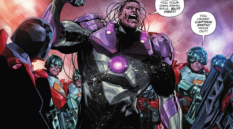 Tak prezentuje się główny Peacemaker w Absolute Universe. Christophera w akcji mogliśmy zobaczyć w „Absolute Superman #8”, gdzie skopał tyłek Supermana!