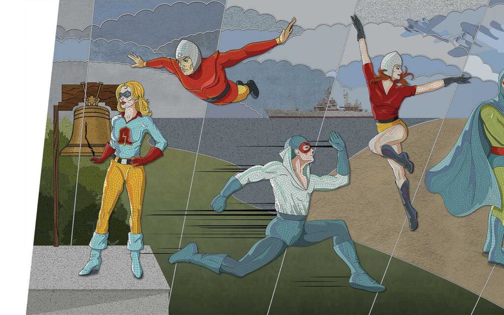 Potwierdzeni kolejni superbohaterowie w DCU! W „Superman” była krótka scena w Hali Sprawiedliwości (fajna scena). Na ścianie znajdował się mural JSA, któremu trudno było przyjrzeć się w kinie. Przebitka trwała… góra 2-3 sekundy?