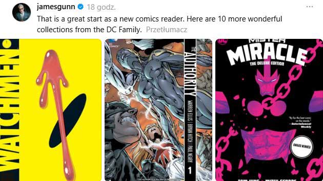 James Gunn udostępnił na Threads polecajkę komiksów DC dla nowych czytelników, „idealne na start”. Na liście wskazał: